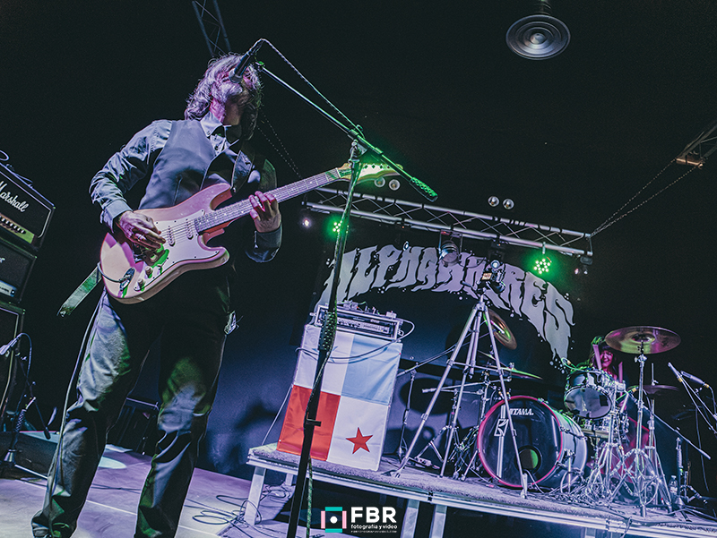 Reducir a Alphawhores a la etiqueta de “dúo” puede resultar engañoso cuando se les ve en directo. Sobre el escenario suenan como una banda mucho más grande, con una densidad y un sonido que desmienten cualquier limitación de formato. El uso de capas de guitarras generadas en tiempo real (algo que en sí mismo no es novedoso) adquiere aquí otra dimensión; no se trata solo de sumar ruido, es cómo lo integra Juan Carlos en la dinámica del directo, construyendo un muro eléctrico que termina de definir su identidad.