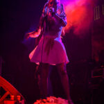 Llegaba otra de las sorpresas del festival en cuanto a sonido y planteamientos escénicos, el del cuarteto londinense Basement Torture Killings, poseedores de una velocidad al borde de la legalidad. Sus letras e ideario están basado en el “true crime” y psychokillers varios, por lo que no es de extrañar que la cantante Beryl salga vestida como de niña fantasma (o similar) portando un osito de peluche que acaba con las tripas por fuera.