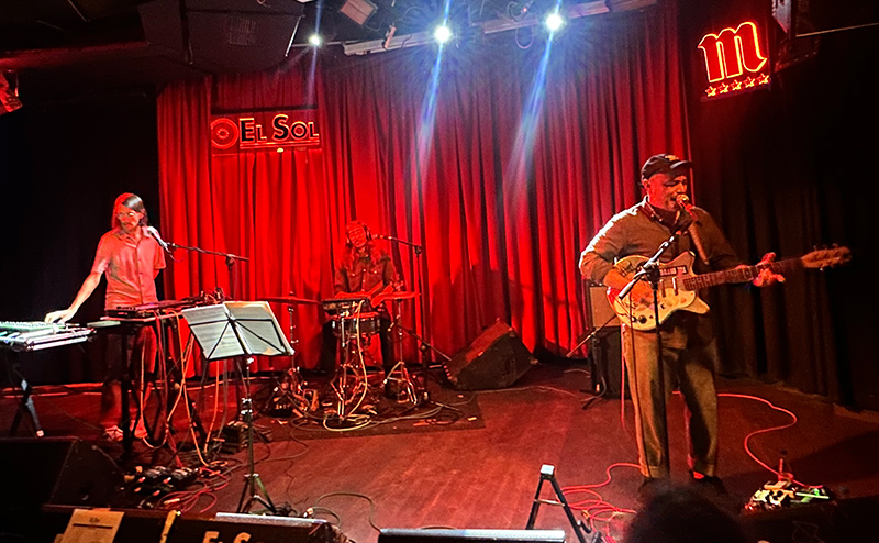 Siguió con la introspección de «Dos Partículas», interrumpida abruptamente con la explosión de «En una cinta magnética» y las estructuras jazzísticas de «Huele a Salvina el micrófono», con otro magnífico cierre. Lucas Bolaño se iba por los cerros de Úbeda cuando intentaba contarnos algo entre canción y canción, Ricardo Ramos no perdía la sonrisa mientras combinaba la batería con su pad electrónico, mientras Betacam era capaz de tocar todos los sintes mientras atendía o cogía a su hija. Todo muy Estrella Fugaz. Todo bien.