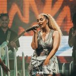 El escenario era todo un guiño estético: dividido en dos planos, con Jorja en primera posición, protagonista absoluta, y el resto de la banda al fondo, separados por una estructura de vigas de madera plateadas que evocaban directamente la escenografía de los late shows de los años setenta. Allí, en ese segundo plano de luces, se desplegaban el teclado, la guitarra, las percusiones y las tres coristas. Al frente de la batería, nada menos que Femi Koleoso, líder de la banda de jazz Ezra Collective, aportando groove, precisión y alma jazzística a cada tema. Una disposición escénica que, más allá de lo visual, reforzaba el protagonismo vocal de Jorja Smith sin dejar de subrayar el nivel instrumental del conjunto.