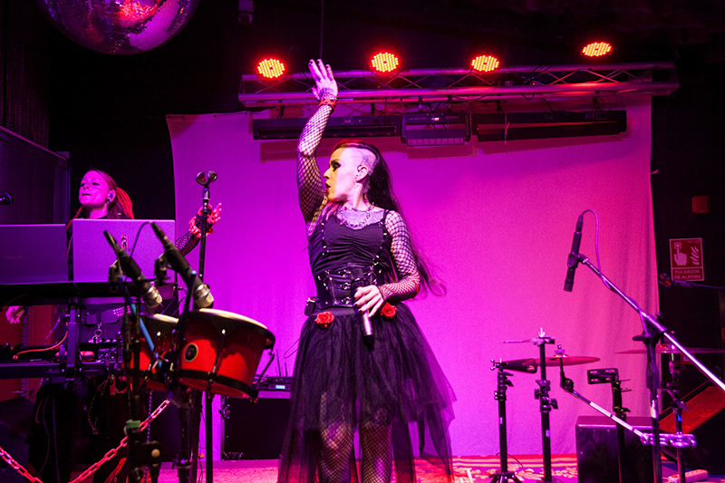 Muchos ignorábamos, más por sorpresa que por desconocimiento, que una artista del perfil de Lidia Navarro, sevillana de Utrera por cuna y coplera travestida de electro punk por vocación, tendría tantos y tan fieles seguidores en la capital cordobesa. En el cada vez más prestigioso escenario de la sala Ambigú se mascaba un ambiente de expectativas halagüeñas, una noche benigna en temperatura externa e interna y una sensación generalizada de espíritu inquieto. Era la primera vez –mea culpa- que la propuesta expansiva y a la vez exigua de La Gore, el llamativo nombre de guerra de esta productora, compositora y cantante, se presentaba ante nuestros ojos y oídos, y tras lo visto y vivido mucho me temo que no será la última. En primer lugar, por el atrevimiento (mantener el pulso escénico durante más de una hora sin flaquear ni en repertorio ni en actitud); en segundo, por la actitud (cualquier alma cándida que viera algún vídeo privado de sonido aseguraría con poco margen de error que estábamos ante una discípula aventajada de algunos tótems de estética gótica como Ana Curra, quizá mezclada con otras reinonas del psychobilly en la onda aguerrida de Poison Ivy); y finalmente, por el concepto.