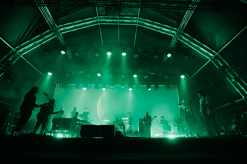 En su única parada española dentro de esta minigira de aniversario, Pierce y los suyos volvieron a hacer gala de una solidez a prueba de bombas, explorando todos los recovecos de un álbum lleno de aristas. Con nada menos que doce músicos en escena, incluyendo una generosa y necesaria sección de teclados, así como sus imprescindibles coristas, el sonido ya de por sí expansivo de Pure phase adquirió otro vuelo al ejecutarlo íntegramente y en el orden original. Porque estamos ante uno de esos discos que pierden con el despiece, cobrando sentido al degustarlo como obra unitaria, pero a su vez plagada de detalles y matices, alternando el minimalismo más íntimo y sutil con las clásicas explosiones de rock psicodélico marca de la casa, derivando por momentos en un iracundo free-jazz que envolvía totalmente el mítico escenario Cupra. Una escenografía sencilla pero efectiva, dominada por el verde que tiñe la reedición de Pure Phase (no muy lejano al verde Brat, por cierto), y unos juegos de luces soberbios complementaron la enésima demostración de la infalibilidad de Spiritualized sobre el escenario. Nunca nos cansaremos de verlos.