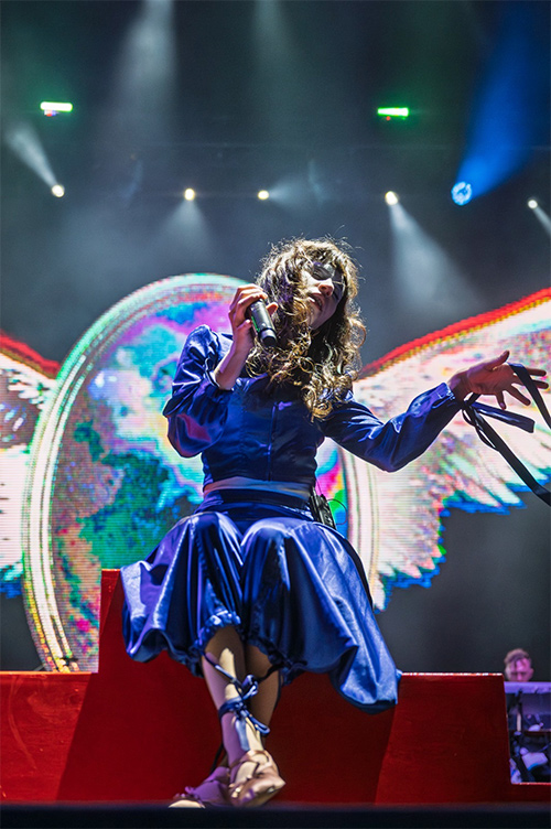 Arrancó a lomos de la simpática y pegadiza “Tocotó” seguida de la sensual “Magia en Benidorm” que dio paso al primer gran momento de la noche, “El encuentro”, himno hedonista perfecto para la causa festivalera. A partir de ahí el resto del concierto fue una montaña rusa sonora y emocional que lo mismo te ponía a bailar, que a saltar o te emocionaba con sus reflexiones sobre la muerte o el desamor. “MAPS” y una extendida y casi ravera “Giratuto” nos pusieron en órbita, “Quedará en nuestra mente”, que como recordó ella misma fue su primera composición, nos hizo sonreír de pura felicidad inocente, y con “Yamagochi” nos transportamos a ese lugar que siempre ocuparán los primeros besos. Para cerrar el concierto un poco de todo: desde una marcianada de versión de “Me pongo colorada” -tengo la sensación de que algo se me escapó-, hasta una sobrecogedora y coreografiada “Tengo un pensamiento” acompañada de un extenso coro, uno de los puntales de esta gira y seguro que de giras venideras, que dio paso a “Bienvenidos al show”, con la que agradecida y sinceramente emocionada se despedía de Barcelona con un triunfo incontestable.