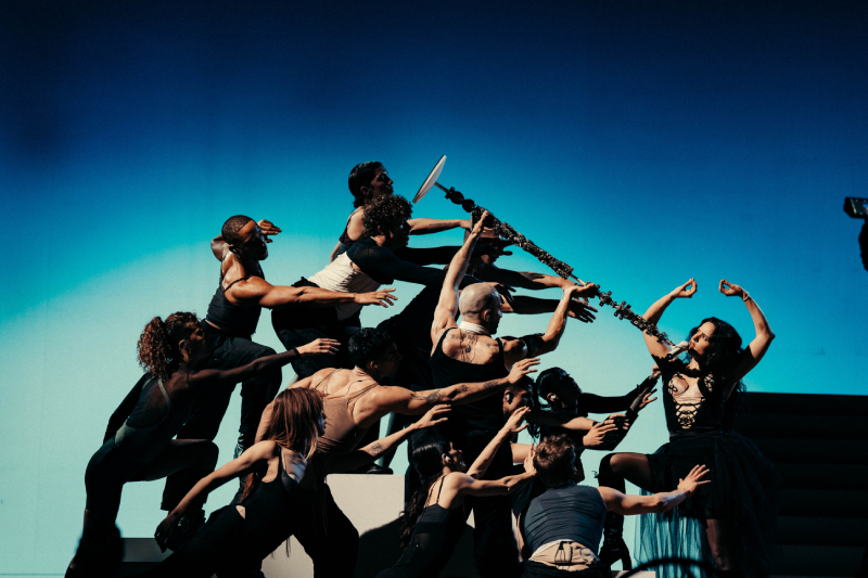 Cerca de dos horas sobre un escenario austero pero en constante transformación, donde cada gesto, cada pose y cada coreografía adquieren un peso simbólico: lo mismo remiten a imaginarios pictóricos cercanos a Goya o Leonardo da Vinci que evocan espacios de marcada carga religiosa. El blanco inicial del vestuario se oscurece hasta el negro para dar paso a una imponente «Berghain», cuyo desenlace de pura rave, empuja el espectáculo hacia un descenso casi infernal. Ahí se quiebra la liturgia y da paso a la deconstrucción de «SAOKO», la sensualidad contenida de «LA FAMA» en clave bachata y el pulso urbano de «LA COMBI VERSACE». Tras el desvío, el relato recupera su hilo con «De madrugá».